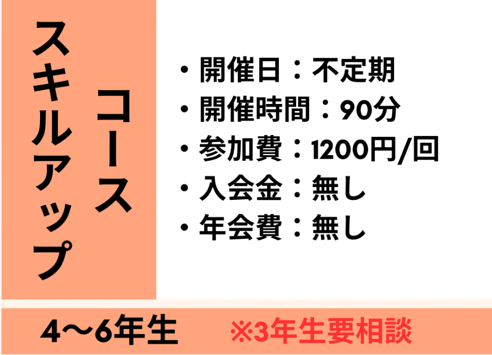 通常コース・ふれあいコースに在籍中の会員のみ参加可能な『技術習得コース』です。