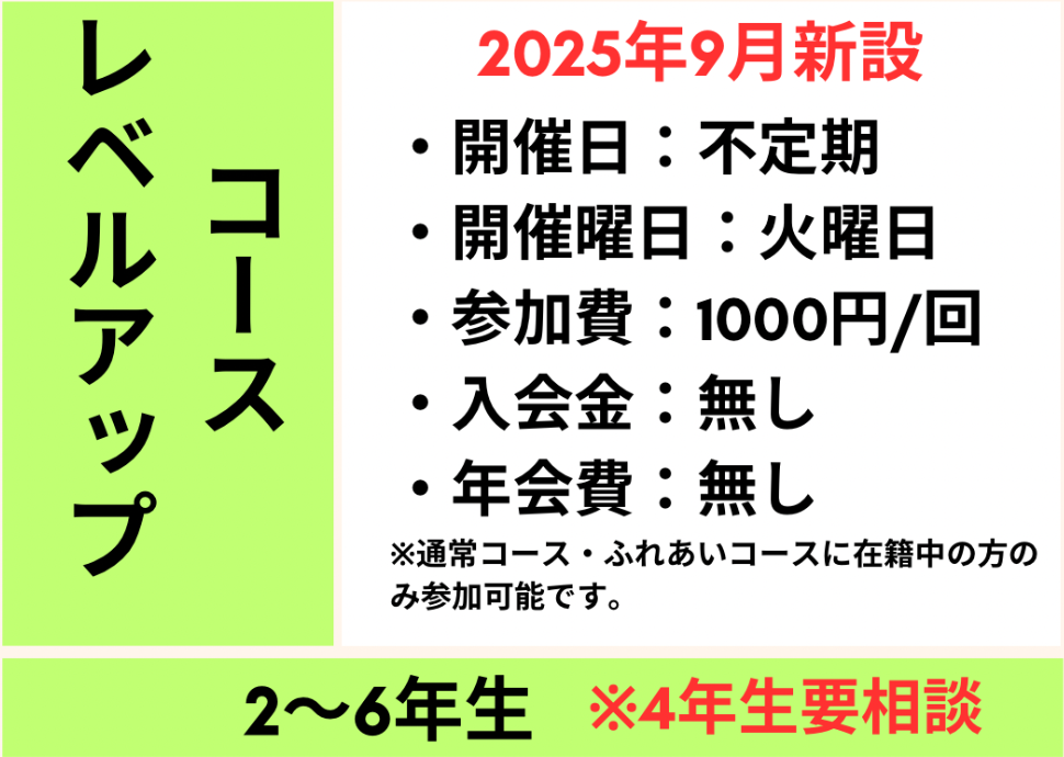 ※レベルアップコースのみの入会は出来ませんので予めご了承ください。
